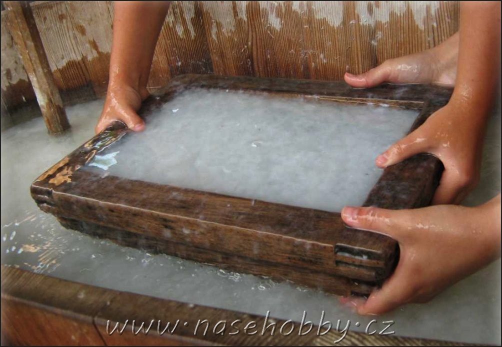 Odborně se ruční papír nazývá čerpaný, tedy nabíraný z čerpací kádě na čerpací formu čili na čerpací síto. Ačkoliv v manufaktuře ve Velkých Losinách se papír vyrábí z textilního materiálu, pro naše domácí papírenské pokusy použijeme výhradně papír. Může být po pravdě jakýkoliv – s výjimkou papíru křídového nebo silně klíženého.