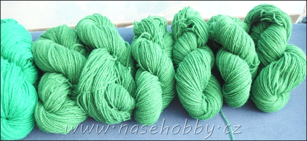 Barvicí lázeň s vlnou začneme zahřívat, a to až k varu. Vlna var velmi dobře snáší. pouze, pokud ji budeme intenzivně míchat. To je důležité: vařící se vlnou se snažíme co nejméně hýbat, spíš ji jen docela pomalu pošťuchujeme vařečkou, abychom ji ponořili pod vodu. Tak vaříme na malém ohni asi půl hodiny, řídíme se návodem a zamýšlenou intenzitou barvy. Pak horkou vodu částečně slijeme a ve zbytku necháme vlnu zcela vychladnout. Pokud by nás napadlo nalít na horkou vlnu studenou vodu, můžeme ji rovnou vyhodit. Srazí se a zplstnatí, že už ji nikdo nerozmotá. Až vlna dokonale vychladne, vymácháme ji v tolika vlažných vodách, dokud bude pouštět barvu. Opět si dáváme pozor, abychom vlnu nemnuli. Vodu z přadýnek opatrně vymačkáme, částečně vysušíme ve starém ručníku a necháme rozprostřenou nebo visící vyschnout. Suchou obarvenou vlnu nakonec smotáme do klubíček.