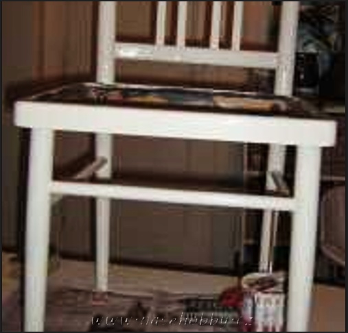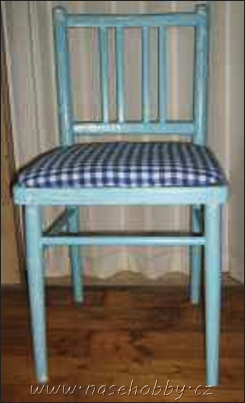 • Opotřebované kuchyňské židle i stůl jsme pečlivě umyli vodou s Jarem. Sedáky jsme sundali. Barva neprýskala, proto nebylo nutné původní odstraňovat, jen jsme nátěr trochu obrousili smirkovým papírem, aby nový lépe přilnul.