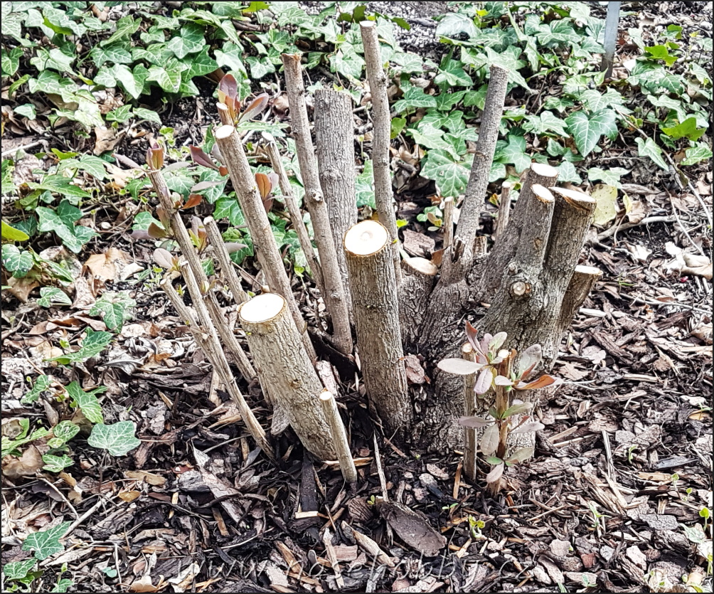- Prořežeme opadavé keře, a to jak počátečním tvarovacím řezem, tak i řezem zmlazovacím. Některým listnatým keřům, jako je např. forzýtie, prospěje radikální řez až u země.